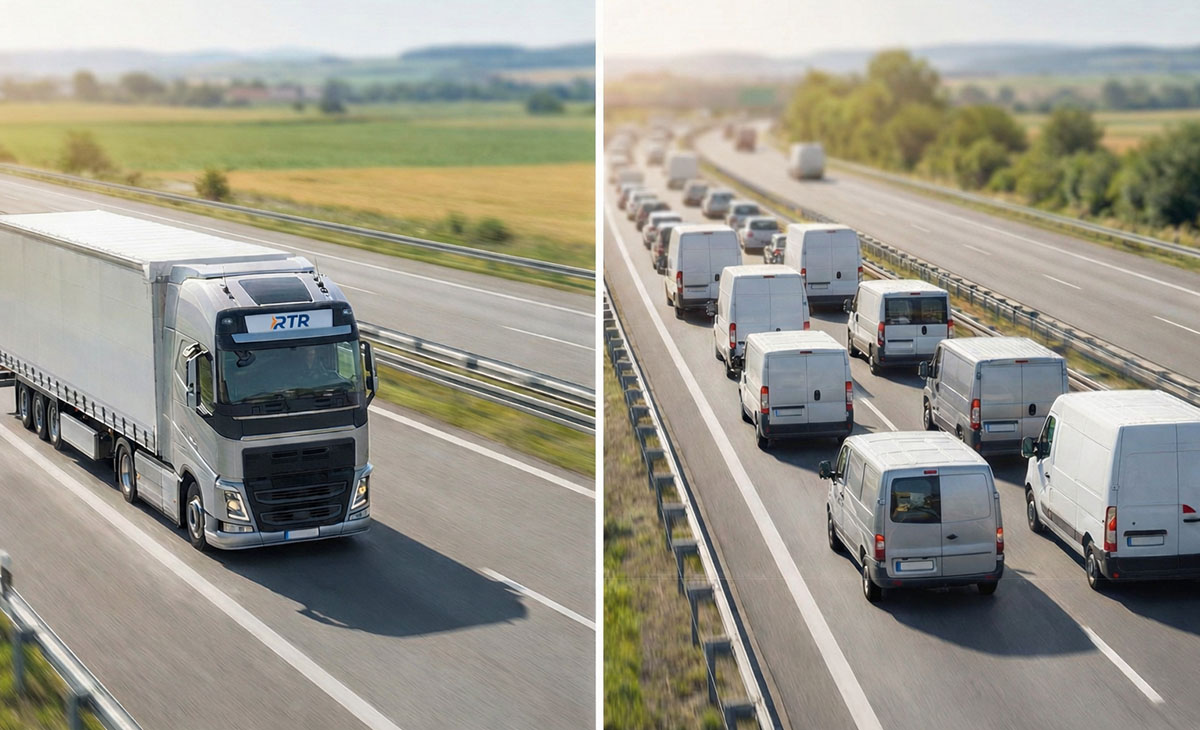 • Regionální model: Z Prahy (nebo z výroby) vyjede jeden plně naložený velkokapacitní kamion (FTL – Full Truck Load) do regionálního skladu RTR v Olomouci. Tam se zboží přeloží a finální rozvoz k zákazníkům probíhá lokálně na krátké trasy.